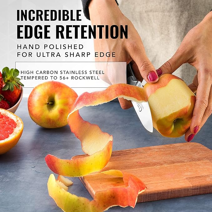 • PROFESSIONAL KNIFE SETS FOR CHEFS: Elevate your culinary skills with this 5 piece knife set of 8" Chef Knife, 7" Santoku Knife, 5.5" Kitchen Utility Knife, 9” Carving Knife and 3.5” Paring Knife. Ideal for chefs and home cooks alike!