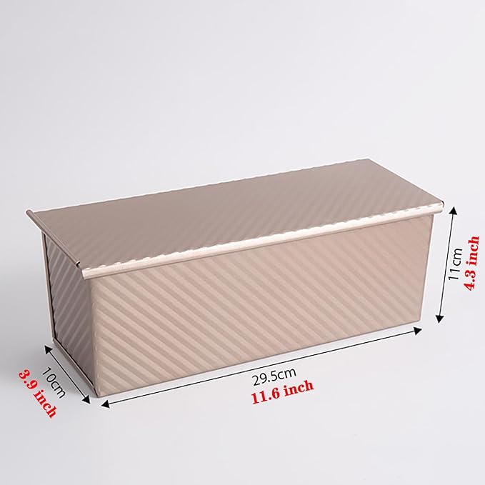• Product Size: 11.6 x 3.9 x 4.3 inches, This Loaf Pan toast mold is treated with a special non stick coating, which does not absorb grease and water and is easy to clean.