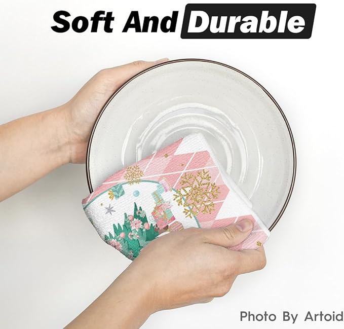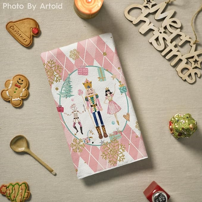Pink Nutcrackers Tree Christmas Kitchen Towels Dish Towels 18x26 Inch Set of 2