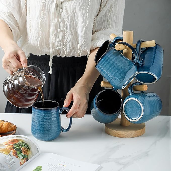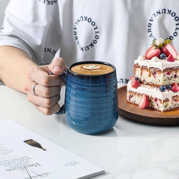 • EXQUISITE AND VINTAGE DESIGN: Hasense large coffee mugs are feature reactive navy glaze which is a beautiful and classic decor for your home and kitchen. Are you looking for a coffee mug set for daily use? Then our blue coffee mugs will be the right set for you.