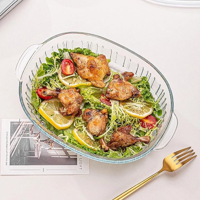 • PREMIUM MATERIAL: Our baking dishes and lids are made of borosilicate glass, can withstand temperatures from -4ºF to 752ºF (-20ºC to 400°C), all of the dishes produced evenly-cooked and delicious food without cracking, breaking or chipping in or out of the oven and freezer