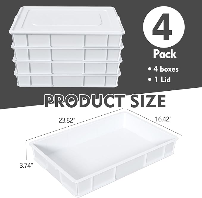 Zopnny 4 Packs Plastic Stackable Pizza Dough Proofing Box with Lid, Pizza Dough Tray, White