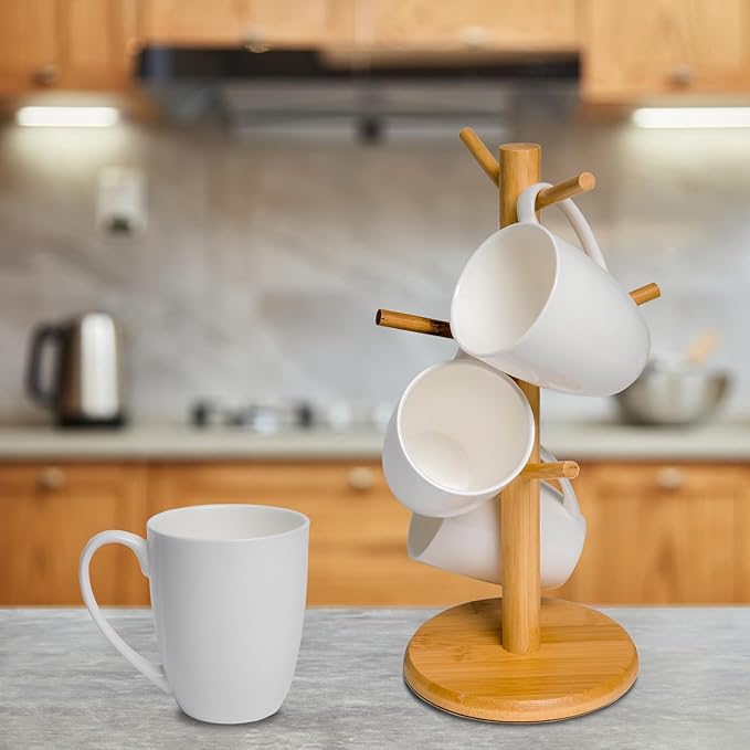 • [Mugs Set] This set includes two 11 oz bone china coffee mugs with a fine, glossy texture, offering durability and elegance. These white tea cups feature a timeless shape and large ergonomic handles, perfect as lightweight coffee mugs for vintage mug collectors