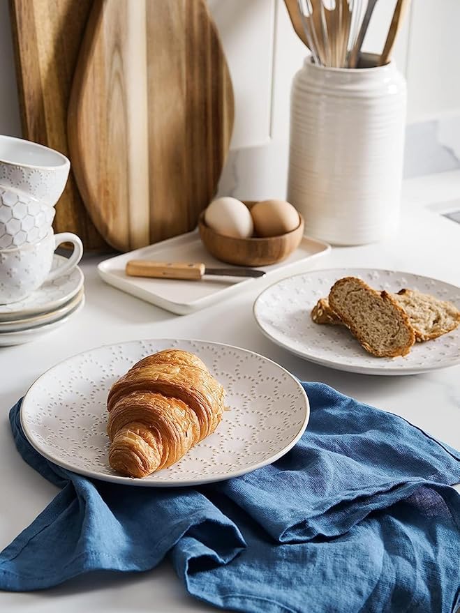 • Service For 4: The Joanna dinnerware set includes 10" dinner plates x 4, 8" salad plates x 4, 6“soup bowls x 4(22 oz) and 8“pasta bowls x 4(12 oz), good for enjoying salads, pastas, soups, fruits and more with friends and family