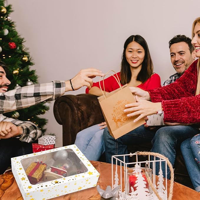 8 Packs Christmas Cupcake Boxes 12 Count, 13x10x3.5 Inch Gold Star Cupcake Containers with Clear Window, Auto-Pop Up Cupcake Carrier with Inserts for Cup Cake, Cupcake Holder for Cookies and Pastry