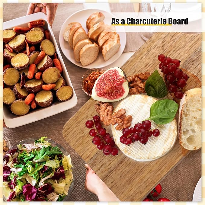 • Efficient and Stylish Kitchen Companion: our acacia wood cutting board and other options are not just practical, but also elegant; They can be applied for efficiently chopping meat, fruits, and vegetables, or served as bread boards, or charcuterie boards