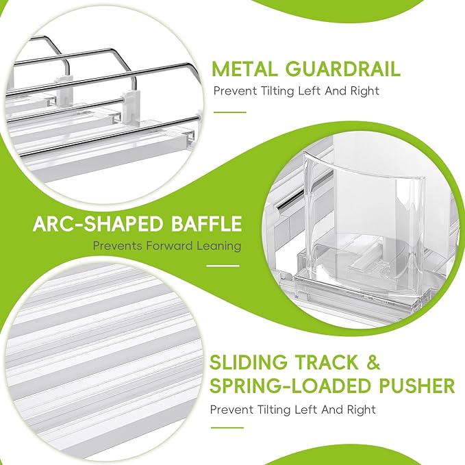 • 【Easy to Assemble and Clean】 No tools are required, which takes only a few minutes by hand, and its smooth surface and waterproof material make the refrigerator drink organizer easy to clean