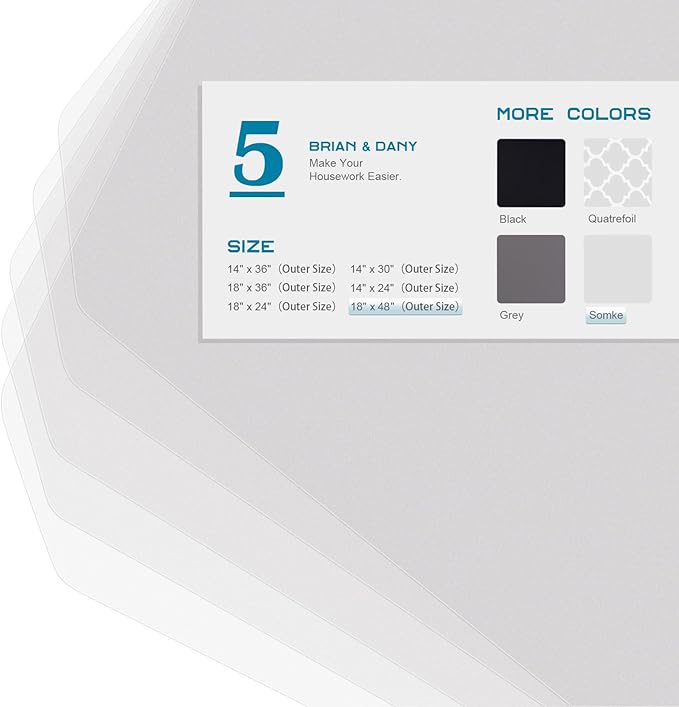 BRIAN & DANY Wire Shelf Liner 18" X 48", Heavy Duty Shelf Liners for Wire Shelving, Waterproof Protector Mats, Set of 5, Transparent