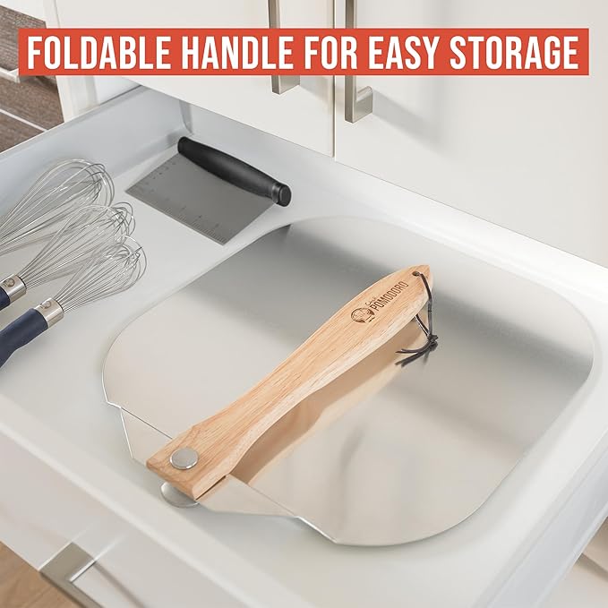 Chef Pomodoro Pizza Peel 16 inch, Pizza Spatula with Foldabe Wood Handle for Easy Storage, Pizza Accessory for Homemade Pizza
