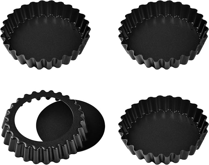 Mini Tart Pan Set, 4-Inch 4pcs with Removable Loose Bottom Non-Stick Round Quiche Bakeware for Oven and Instant Pot Baking (Black)