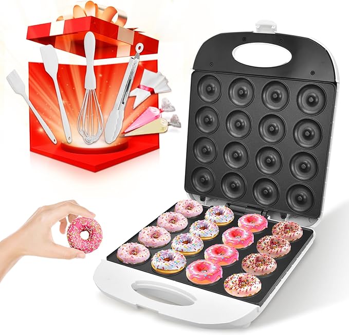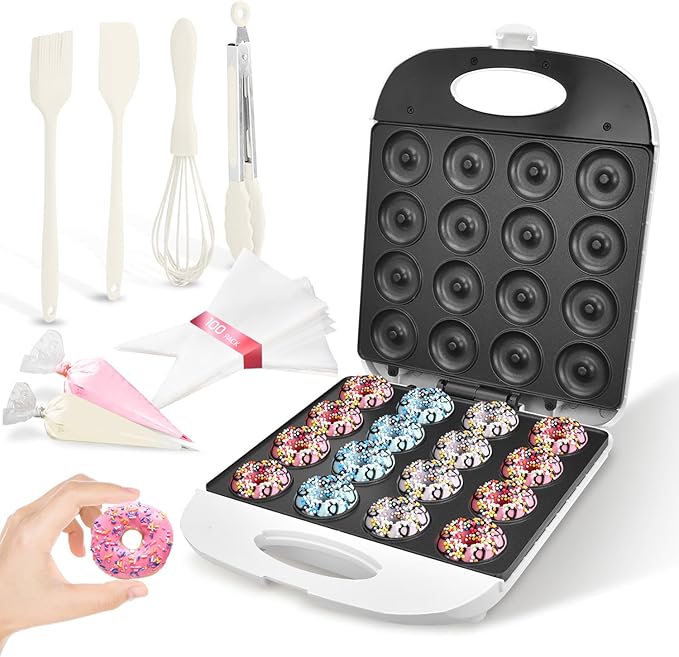 DSP All in One 2 Inch Mini Donut Maker, Non-Stick, Cool Touch, Electric Doughnut Machine for 16 Snacks & Desserts, Perfect for Birthday, Wedding, Baby Shower, Christmas, Party, Afternoon Tea