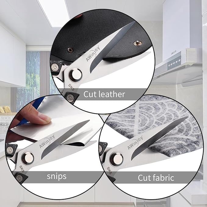 • Multipurpose Scissors: The kitchen shears are suitable for cutting meat, poultry, fish, herbs, vegetables and other kitchen ingredients. It is an ideal tool for kitchen work, and can also be used for other purposes such as cutting paper, opening packages, etc.