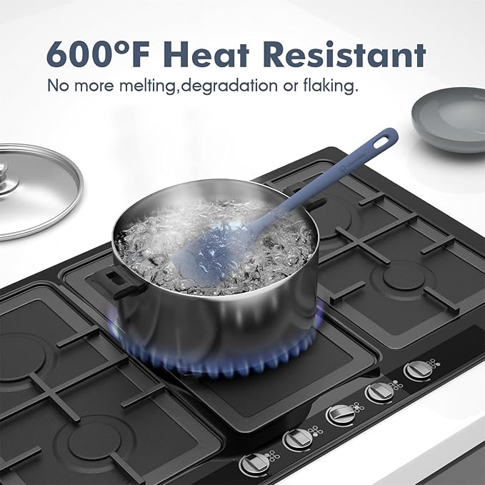 • Premium 100% Food Grade Silicone: The silicone spatula set is made of healthy and friendly material, resistant to high temperatures up to 600 °F. No more melting, cracking and worrying