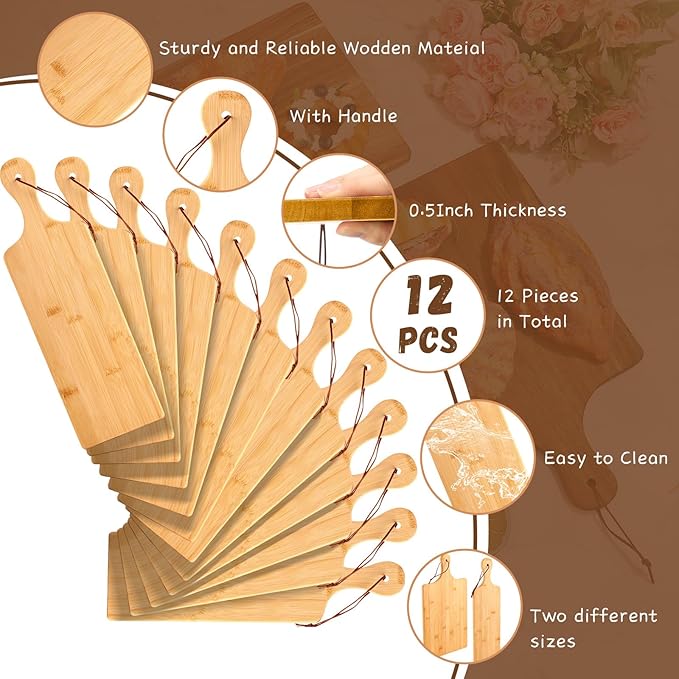 • Included Components : 12 Bamboo Wood Cutting Boards with Handle