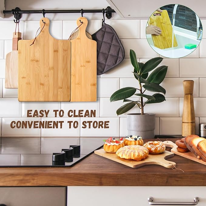 • Safe and Quality Material: the assorted size cutting board with handle is made of quality bamboo wood material with fine workmanship, strong and sturdy, safe and odorless, washable and reusable, not easy to break or deform, and you can apply oil to the cutting board after use to extend its life
