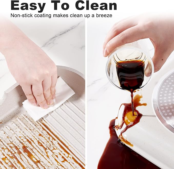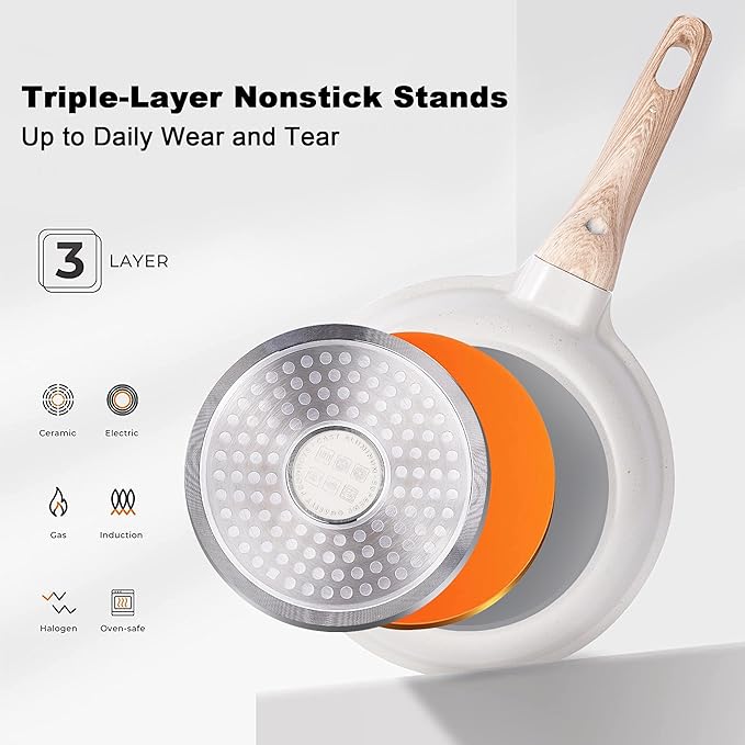 • Caannasweis Granite Non-stick Coating: When you embark on the journey of buying cookware, the non-stick ability is a crucial factor that simply can't be overlooked. Non-stick isn't just a minor convenience; it's a game-changer that completely transforms the way we cook. Gone are the days when you had to struggle with a spatula to pry the food off the pan's surface. Instead, the food will effortlessly glide across the surface and be cooked to a perfect color.