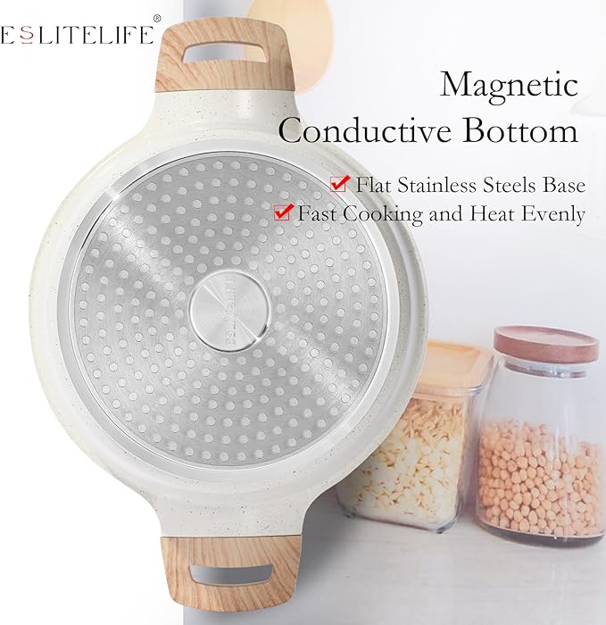 ESLITE LIFE Nonstick Stock Pot with Lid, 5 Quart Granite Casserole Large Soup Pot Pasta Cooking Pot, Induction Compatible, PTFE & PFOA Free, White