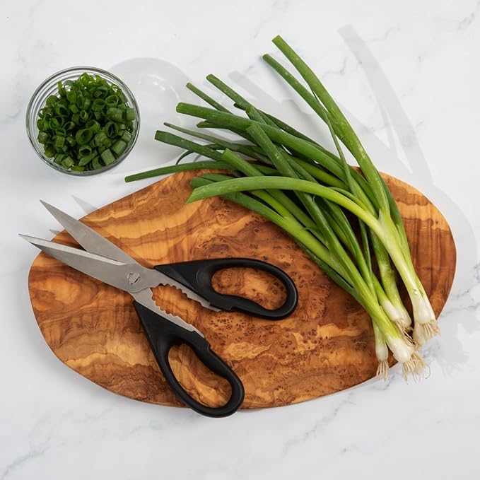 • Set Includes: 1x 8” Chef Knife, 1x 8” Bread Knife, 1x 8” Slicing Knife, 1x 5” Santoku Knife, 1x 5” Utility Knife, 1x 3.5” Paring Knife, 6x 5” Steak Knife, 1x 8” Honing Steel, 1x Pull-apart Utility Scissors, 1x Rubberwood Block