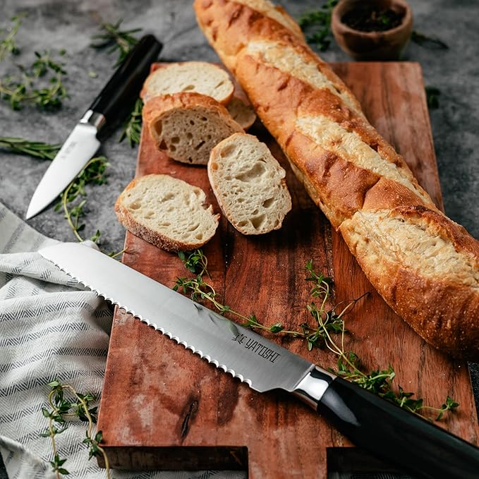 Yatoshi 15 Piece Knife Block Set - Pro Kitchen Knife Set Ultra Sharp High Carbon Stainless Steel with Ergonomic Handle