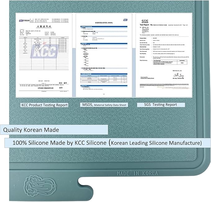 • 【Quality Made in Korea】 The cutting board is quality made in Korea. It made with top graded silicone rubber, Stain-proof, stick-resistant, will never tarnish or discolor; Meticulously designed to serve you for many years. It is safe from any chemical substances and their reactions. Silicone material is never changed or reacted with the hot water.