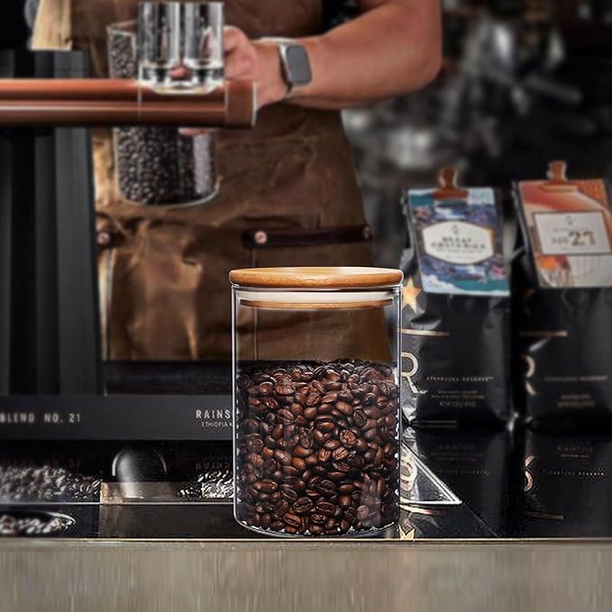 • Airtight Bamboo Lid: This glass jars with bamboo lids is equipped with food-grade silicone sealing ring and the tight with the mouth, glass storage jars it is more airtight to keep the food fresh and dry.