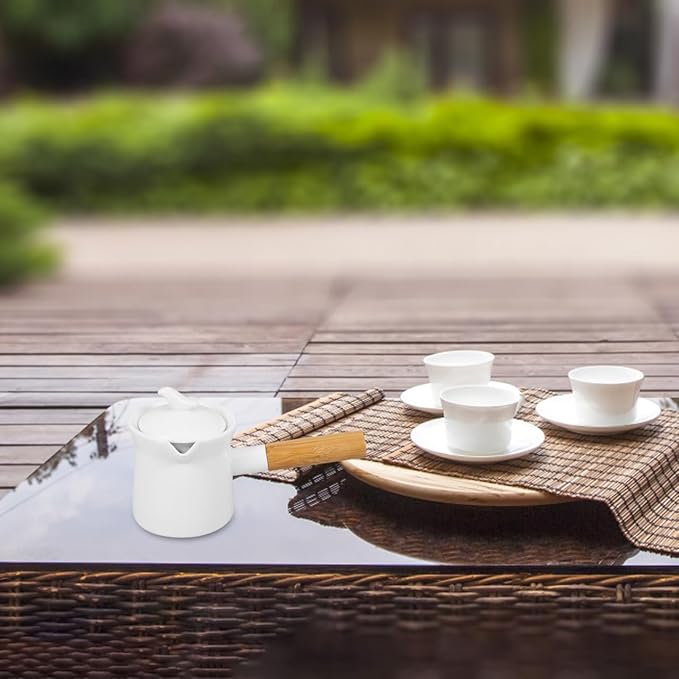 BESTonZON Ceramic Milk Warmer Pot 350ml Enamel Pan Non-stick Saucepan With Lid Porcelain Coffee Pot Food Bowl Butter Warmer With Wooden Handle for Heating Liquid Appetizer