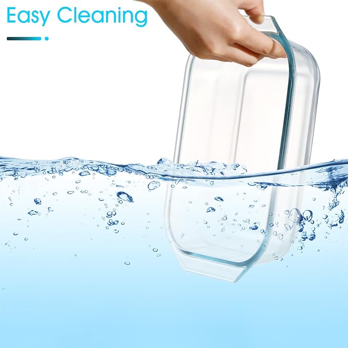 • 【Made From Tempered Glass】Rectangular glass casserole dish can withstand temperatures between 482° F and -4° F without worrying about thermal shock breaking it.The smooth glass surface is nonporous, preventing food particles from sticking and making it easy to wipe clean.