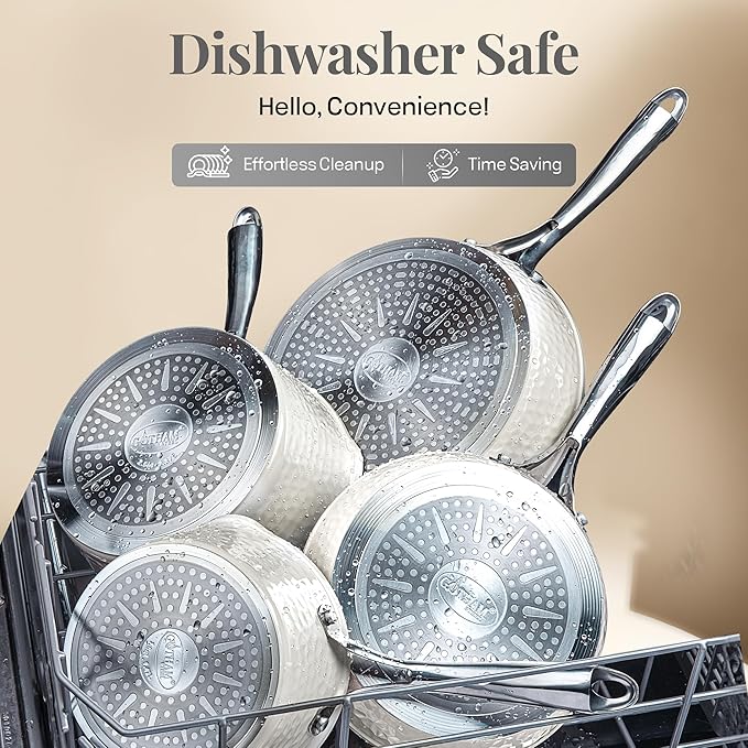 • EFFORTLESS CLEANUP, DISHWASHER SAFE: Spend less time with cleanup! After all the cooking and prepping is done, place cookware in the dishwasher for quick and easy cleanup.