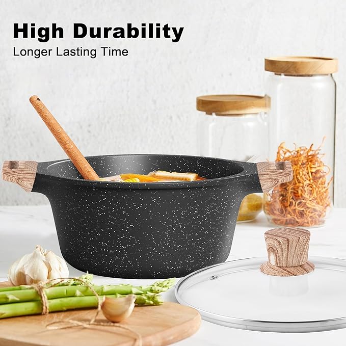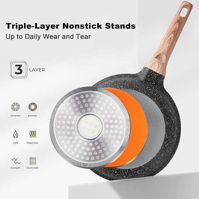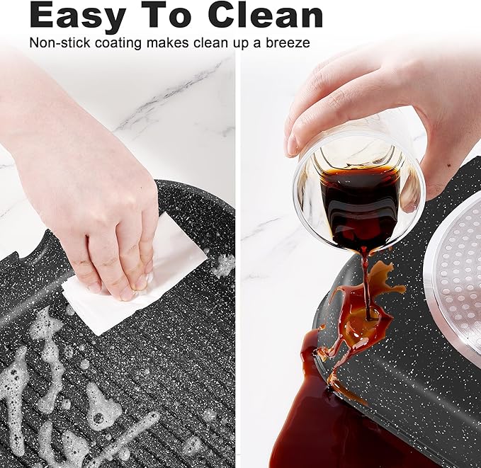 • Caannasweis Granite Non-stick Coating: When you embark on the journey of buying cookware, the non-stick ability is a crucial factor that simply can't be overlooked. Non-stick isn't just a minor convenience; it's a game-changer that completely transforms the way we cook. Gone are the days when you had to struggle with a spatula to pry the food off the pan's surface. Instead, the food will effortlessly glide across the surface and be cooked to a perfect color.