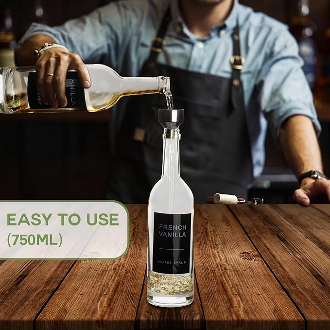 • 【Coffee Syrup Bottles Set is Also a Perfect Gift】The elegant coffee bar accessories and organizer is the perfect housewarming gift for friends and family,If you have any questions about the glass coffee syrup dispenser set, please contact us directly and we will provide you with the perfect solution .