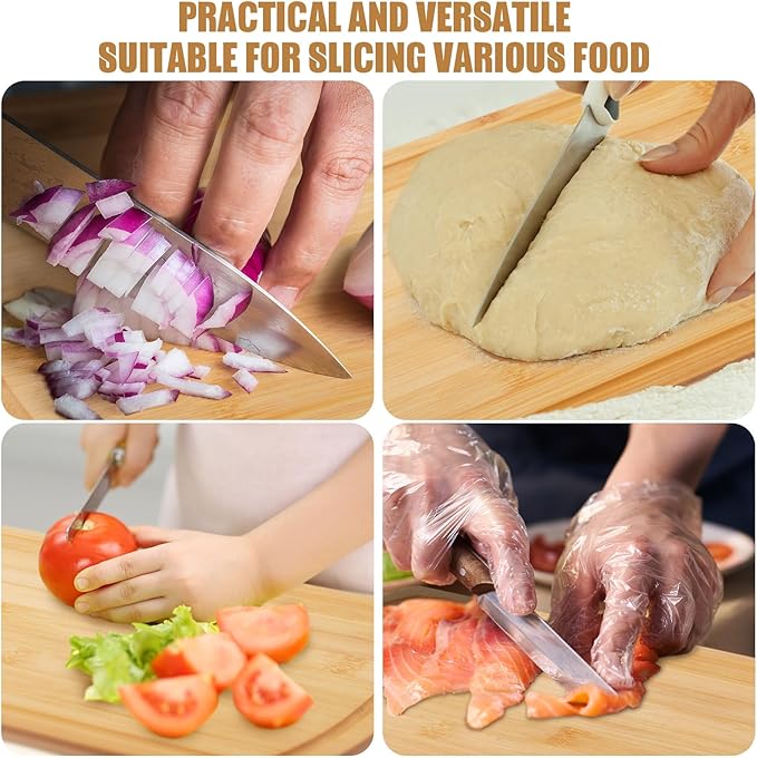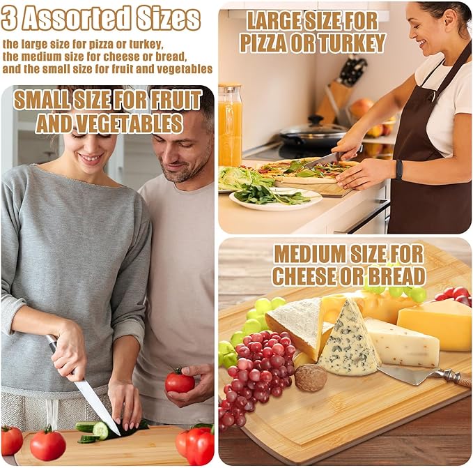 • Wide Application: our cutting boards are large and big enough to handle large roasts, such as turkey and ham, etc., ideal for cutting vegetables, bread, meat, cheese or other foods, they can also be ideal gifts for housewarming parties choose