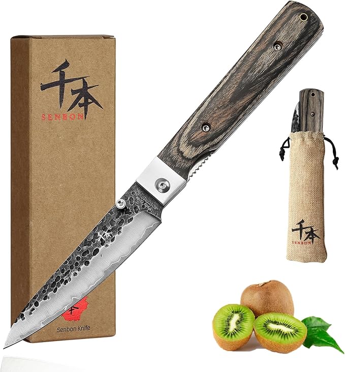 SENBON Forged 440A Stainless Steel Ultra Sharp Pocket Folding petty Universal Knife Color Wood Handle Camping Travel Outdoor Portable Fruit Knife