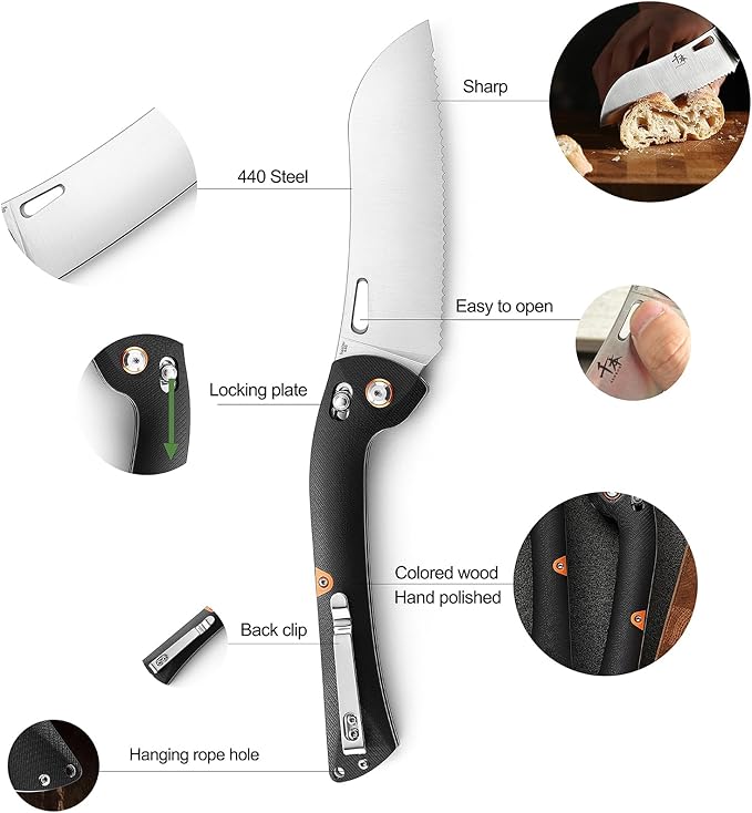 • 1:Portable folding Bread knife,Suitable for camping, BBQ, fishing..... outdoor activities,Also applies to small Bread knife for home cooking
