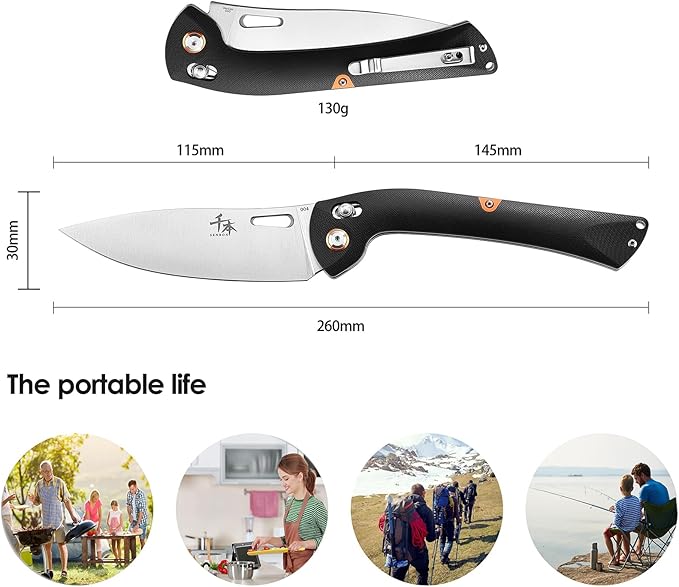 SENBON 440 Stainless Steel Super Sharp Pocket Folding Chef Knife - Peeling, Utility, Fruit Knife - G10 Handle - Camping, Barbecue, Outdoor - Clip