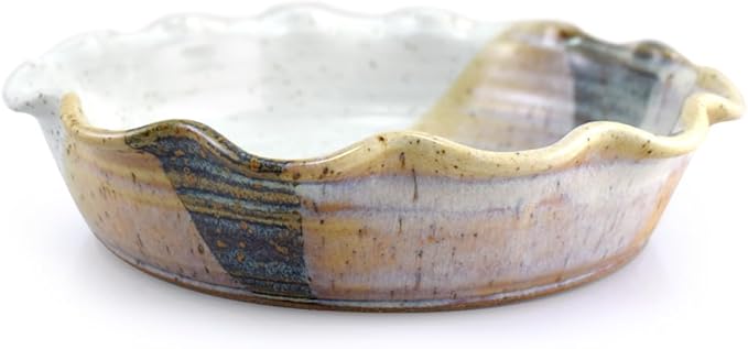Modern Artisans American Handmade Stoneware Pottery Fluted Pie Plate, 10-inch, Cottage Pearl Collection