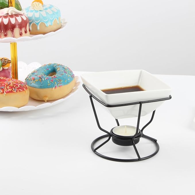 4Pcs Ceramic Butter Warmers Set for Chocolate Butter Cheese, 7oz Porcelain Butter Warmers Set for Seafood, Butter Warmer Pot Ceramic Sauce Bowl for Fruit, Dessert, Snack, Steaks, Square