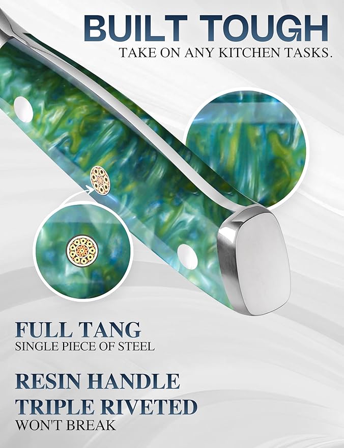 • Perfect Gorgeous Design】Please note, each resin colorful handle is unique so each is individual and unique although they may not perfectly match the one in the photo. But, exquisite handle is using custom design and solid crafting.