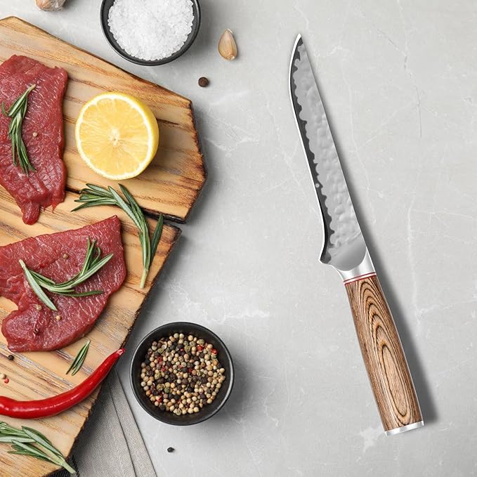 • Performance : Ultra sharp boning knife, 15° V shaped blade, sharp and straight edge, suitable for cutting, dicing, slicing, chopping vegetables, fruits, meat, etc