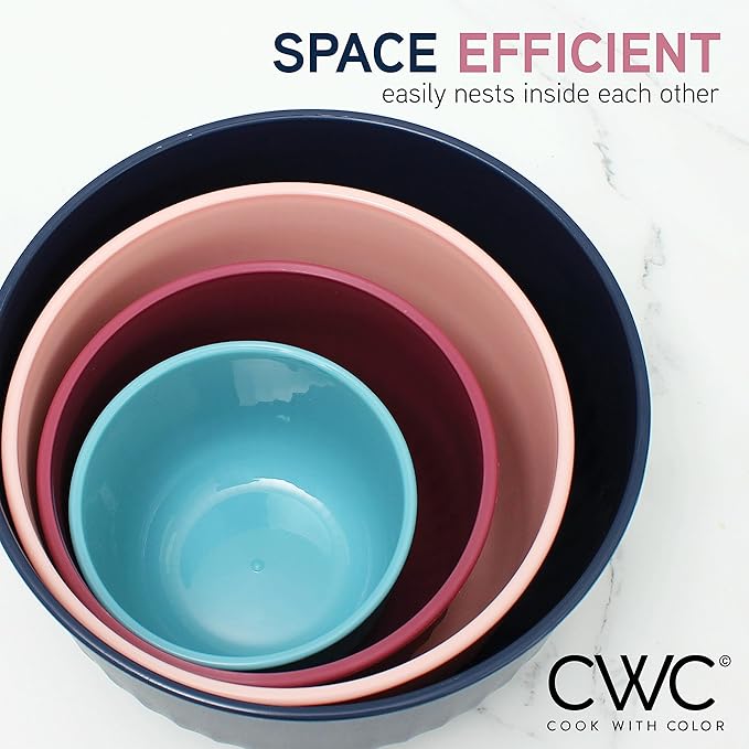 • Beautiful Cook with Color bowls will enhance your cooking experience in class! Our 8 piece small mixing bowl set with lids add a decorative touch and functionality. The chic colors make them great for kitchen to table serving.
