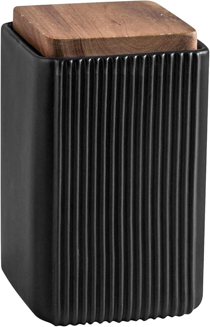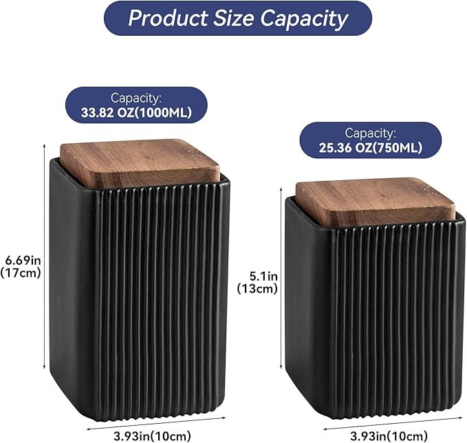 Ceramic Storage Jars Modern Elegant Polished Airtight Gorgeous Storage Canisters with Wooden Lid Small Food Stroage Jar for Kitchen Spice Tea Vanilla Sugar Coffee Beans (Black,Large size,17cm*10cm)