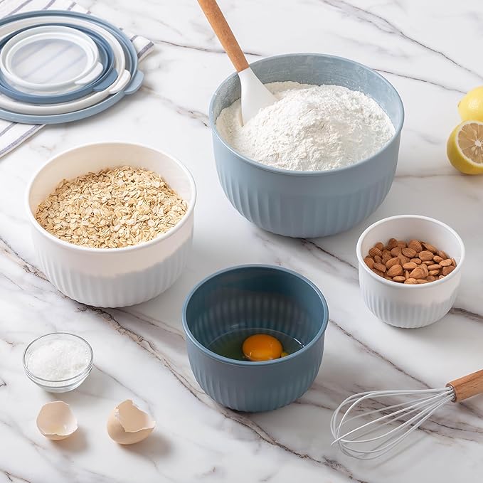 COOK WITH COLOR Prep Bowls with Lids- Wide and Deep Nesting Plastic Small Mixing Bowl Set with Lids, 8 Piece Set - Deep Bowls, Blue/Grey