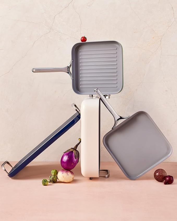 • EFFICIENT USE & CLEANING: Utilize the efficient heat retention of ceramic coated pans by cooking on low to medium heat. A dash of oil or butter is all you need for food to effortlessly glide. Enjoy easy cleanup with a simple and gentle scrub.