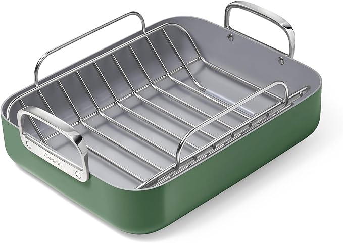 • MADE FOR BIG RECIPES: Caraway's 16x13" Roasting Pan and Rack set brings clean cooking to the forefront, ideal for main event recipes or Sunday dinner roasts.
