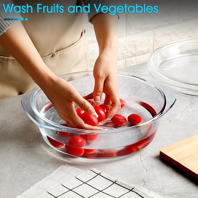 • 【Versatile Use】In addition to its primary function as a casserole dish, this versatile casserole dish can also be used as a washing basin for vegetables or fruits. The glass material is non-reactive and does not retain odors or flavors, making it ideal for preparing fresh, crisp salads and other healthy dishes.