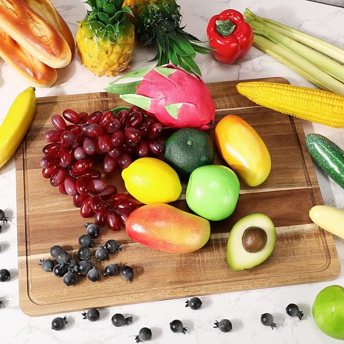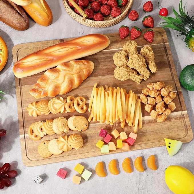 - Quality Material: this butcher block cutting board is crafted from quality acacia wood and vegetable oil coating, it's built to last, providing you with a reliable kitchen tool that can handle your needs; The wood's grain patterns and a blend of light and dark natural color variations add a touch of elegance to your kitchen decoration, making it a beautiful addition to your countertop; The quality material ensures that this cutting board provides you with a reliable kitchen tool you can count on