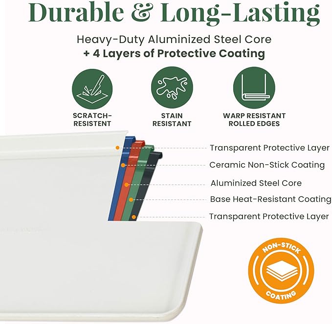 • Durable 4-Layer Construction: Made from heavy-gauge aluminized steel with five protective layers, these baking essentials resist warping and endures repeated use, delivering reliable performance and lasting quality for years of baking enjoyment.