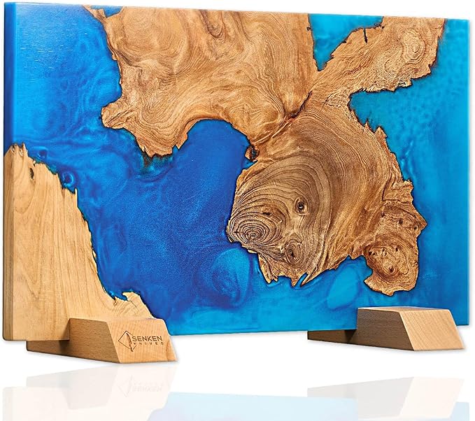 SENKEN "Tsunami" Extra Large Magnetic Knife Block - Holds Up to 16 Knives - Knife Block without Knives, Universal Knife Holder, Beautiful Blue Resin & Natural Wood Blend ("Tsunami" Blue Resin Blend)