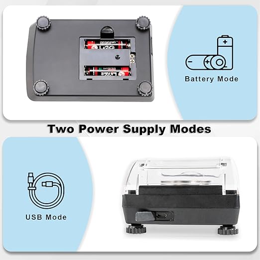 • Two Power Modes:The Digital Milligram Scale offers 2 power modes (2 *AAA batteries and USB cable, non-rechargeable), so no more worrying about weighing small items on the go with dead batteries. In addition, the Pocket Scale has an auto-shut-off feature that helps save energy by automatically turning off after 180 seconds of inactivity;