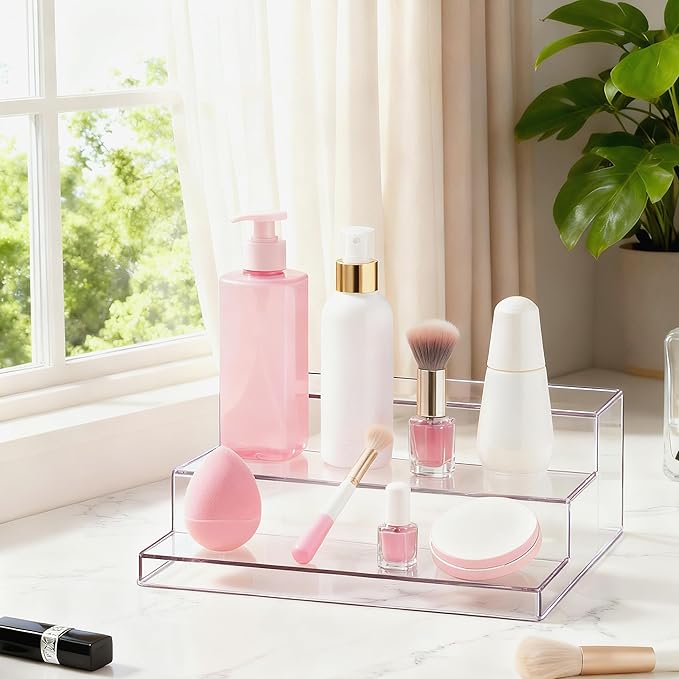 vacane Clear Spice Rack, 3 Tiered Shelf Spice Organizer for Cabinet, Spice Shelf and Perfume Organizers Make Up Organization Great for Pantry, Bathroom, Kitchen, Bedroom, Office 2 pack