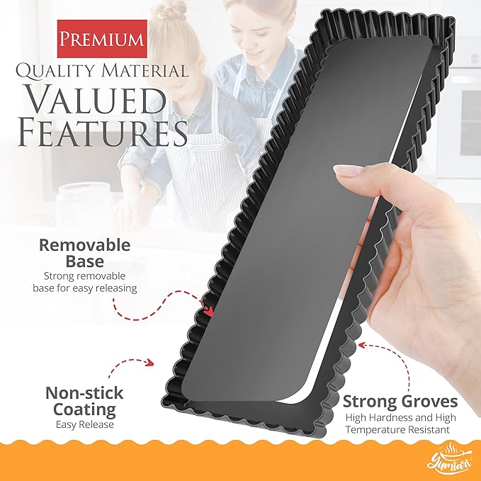 • IDEAL FOR ENTERTAINING: 14-inch length and 1.1-inch depth make this rectangular tart pan perfect for large tarts, quiches, pies, and cheesecakes for gatherings.